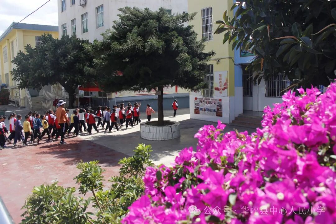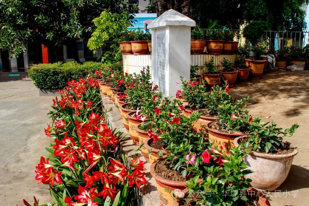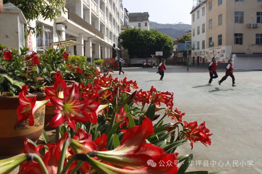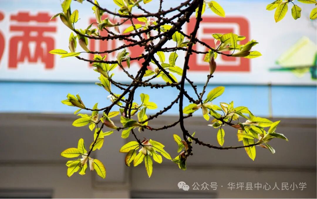 衔一声鸽哨,挽一抹晚霞,初春的华坪县中心人民小学,红了,绿了,黄了,紫了——那是萌动的旋律,春之声——知否知否,应是绿肥红瘦。