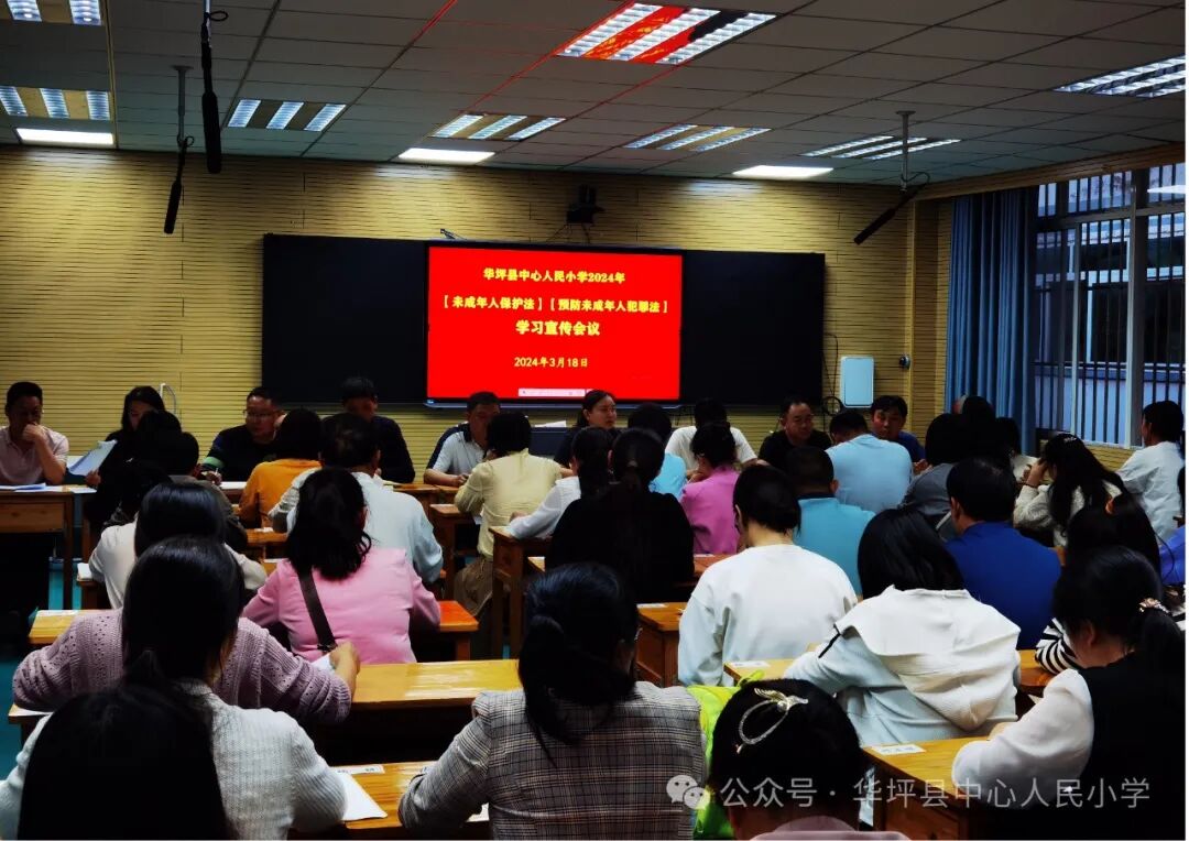 为促进未成年人身心健康成长,扎实开展防范和打击整治侵害未成年人违法犯罪行为,增强广大教职工的意识,学校、家庭、社会三方合力,筑牢未成年人保护安全防护墙,3月18日,华坪县中心人民小学召开未成年人保护暨预防未成年人违法犯罪工作专题会议。会议由党支部书记、校长周本永主持,全校80余名教职工参加,县教育体育局副局长文艳萍专题宣讲。