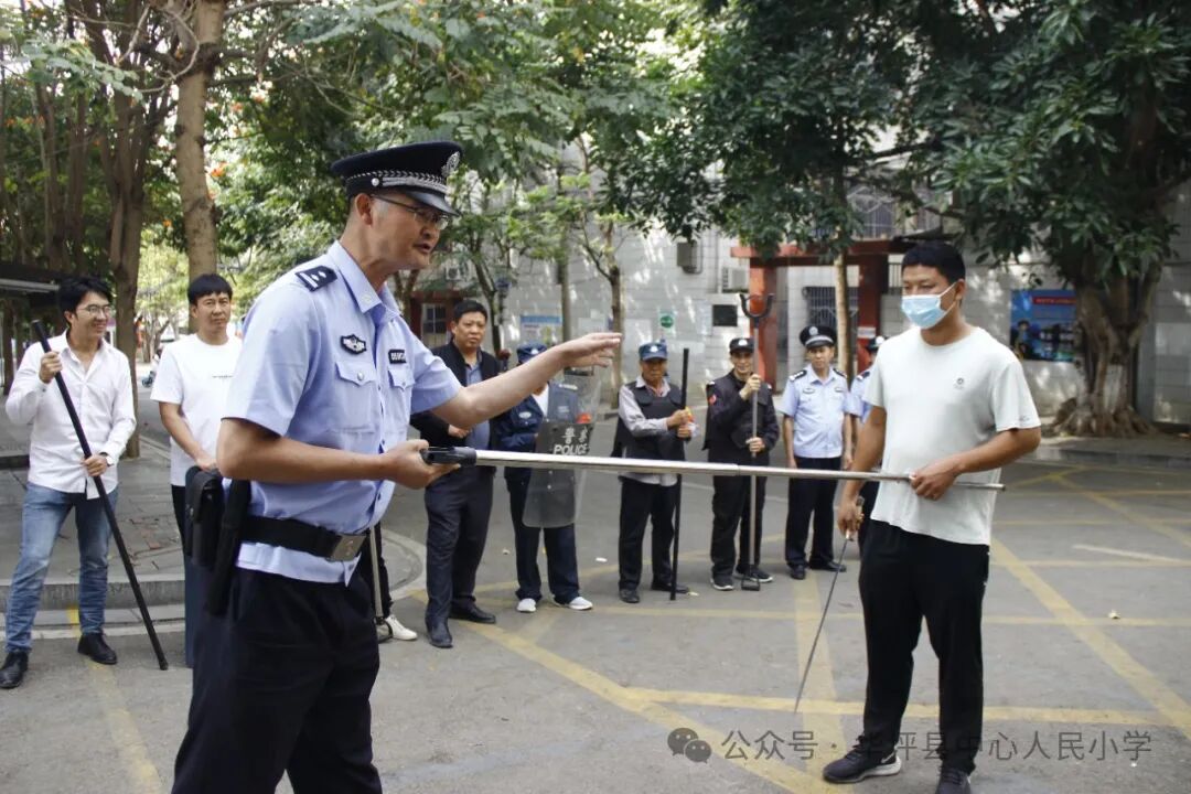 为有效防范恐怖分子和心理异常人员闯入校园伤害师生,提高保安、护校队及广大教师的应急处突能力,派出所民警就防范的原则、时机把握、应对措施等方面进行了讲解和演示,对盾牌、警棍、胸叉、脚叉等防护工具的使用及应对方法进行了示范并及时纠正教职工的使用错误方法。