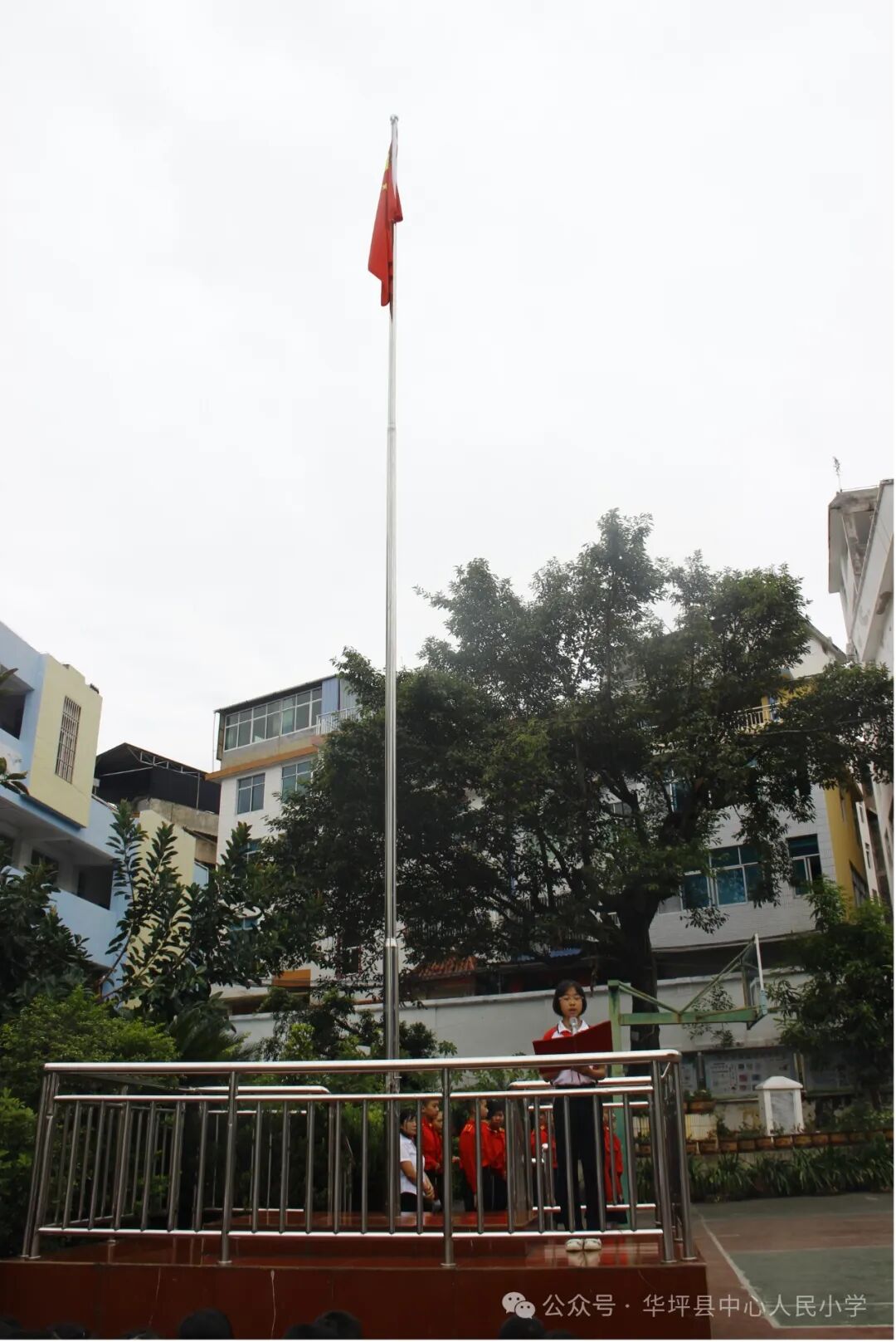 上午10时整,升旗仪式开始,教师身着雪白的衬衫,学生身着整齐的校服,党员徽章在党员胸前熠熠生辉,鲜艳的红领巾随风飘动。伴随着雄浑激昂的国歌,鲜艳的五星红旗迎着朝阳徐徐升起,全校师生肃立,行注目礼,共同见证了这一庄严时刻。