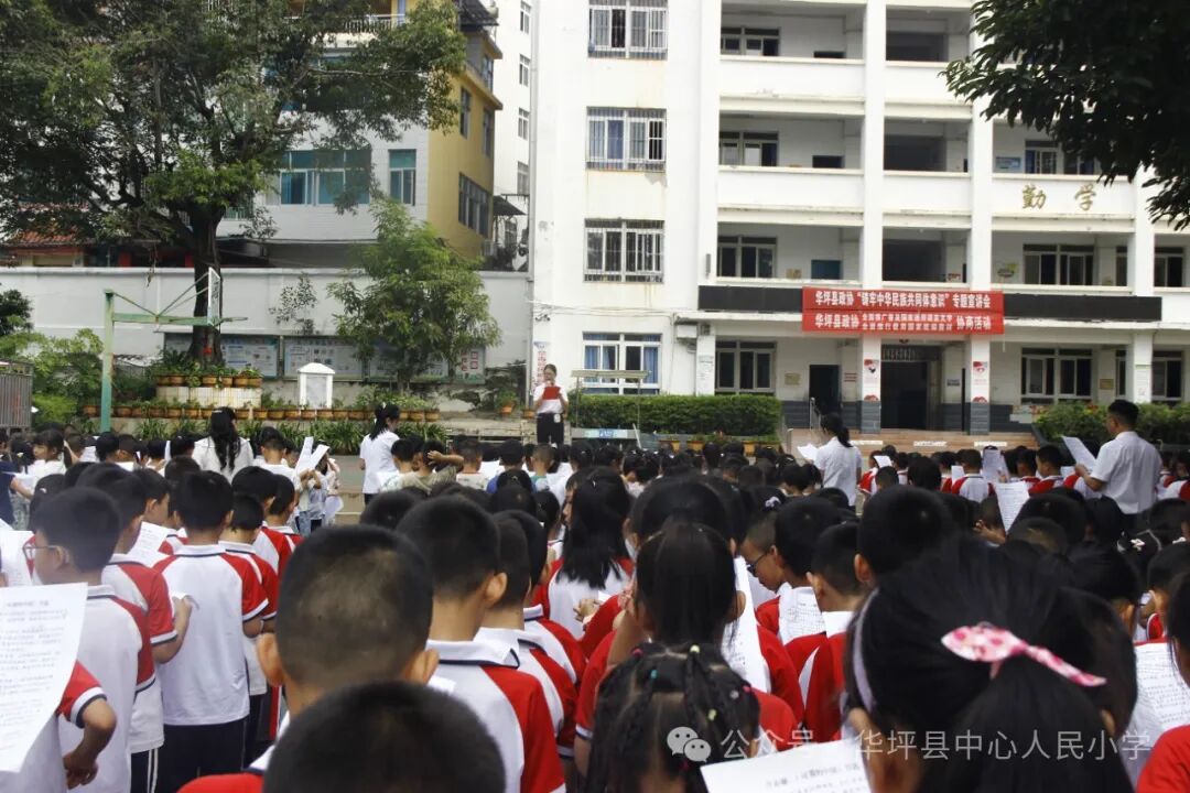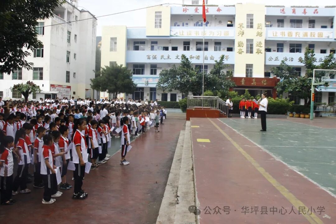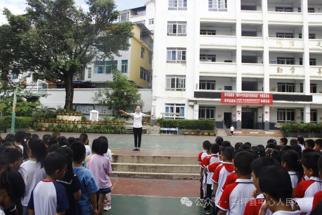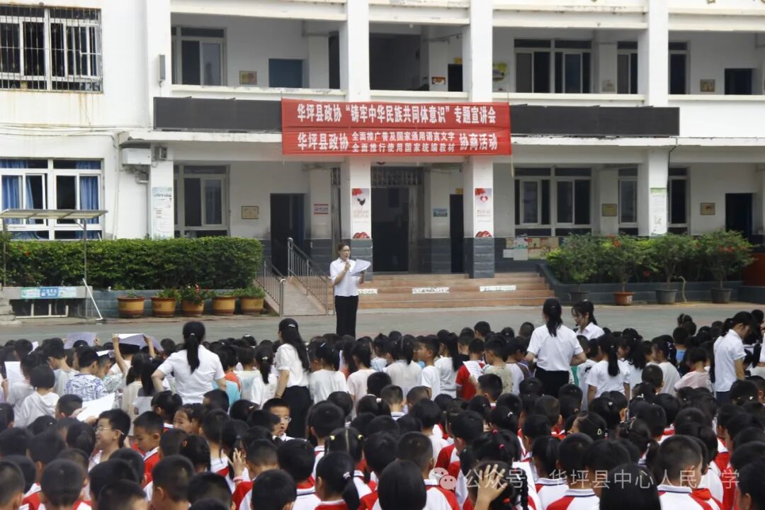 为铸牢中华民族共同体意识,进一步增进学生对中华民族大家庭的认同感和归属感,9月9日,根据县政协关于“双推”工作(即全面推广普及国家通用语言文字、全面推行使用国家统编教材)的倡议,华坪县中心人民小学组织了以“四个一”(即同升一面旗、同听一堂课、同讲一席话、同唱一首歌)为主要内容的主题教育活动。全校1700余名师生参加,县政协副主席李秀清到会指导并作专题宣讲。
